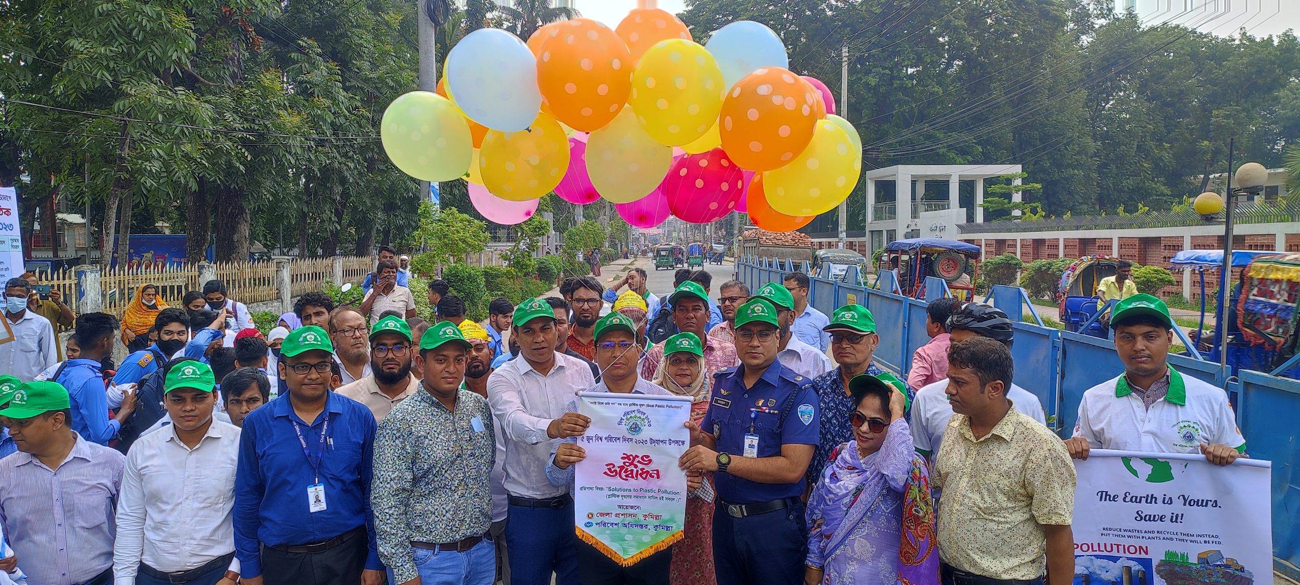 সোমবার সকালে দিবসটি উপলক্ষে কুমিল্লা জেলা প্রশাসন ও পরিবেশ অধিদপ্তরের আয়োজনে সবাই মিলে করি পণ, বন্ধ হবে প্লাস্টিক দূষণ এই শ্লোগানে নগরের শিল্পকলা একাডেমী থেকে ব্যানার ফেস্টুন নিয়ে একটি বর্নাঢ্য র্যালি ও বাই-সাইকেল শোভাযাত্রা বের হয়। র্যালিটি নগরীর প্রধান সড়ক প্রদক্ষিন শেষে কুমিল্লা জেলা প্রশাসক কার্যালয়ে গিয়ে আলোচনা সভায় মিলিত হয়।